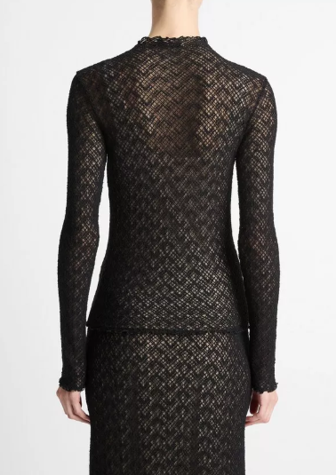 Cotton-Blend Diamond Lace Mock-Neck Long-Sleeve Top