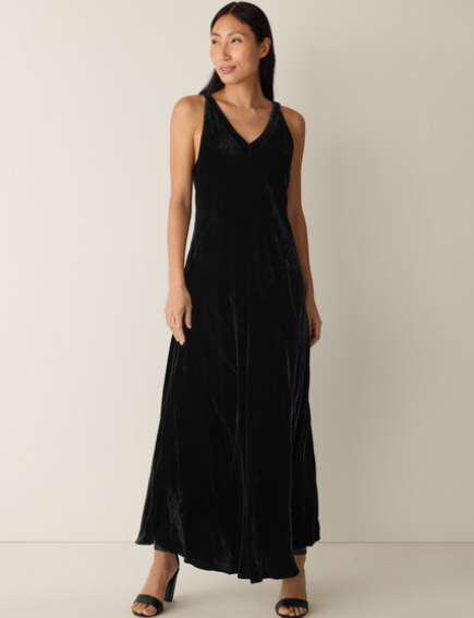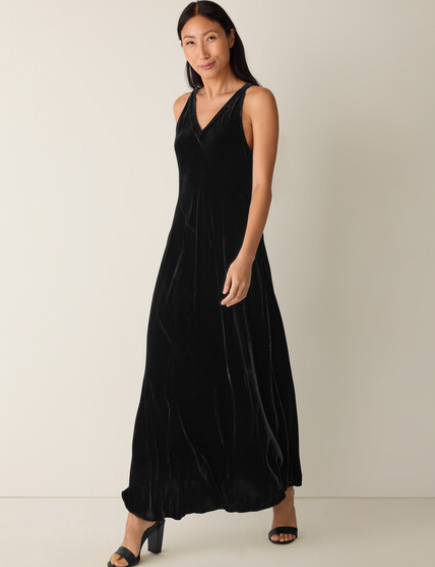 Dressing for the occasion made easy. A sophisticated V-neck dress in drapey velvet with subtle shimmer. Made in a Fair Trade Certified™ factory.