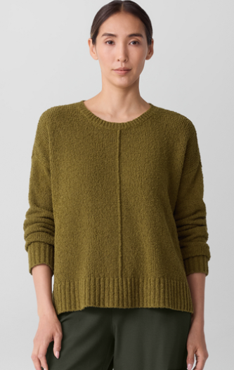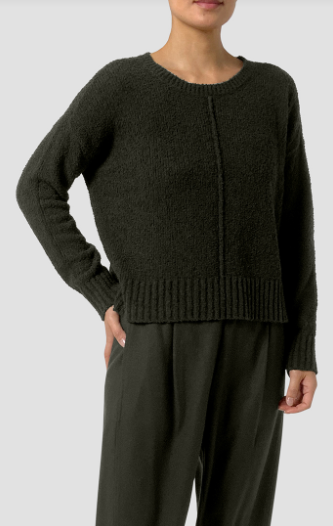 A cozy crew neck top that's as soft as it looks. With long sleeves and ribbed texture, in a fluffy cotton boucle that provides warmth without weight.