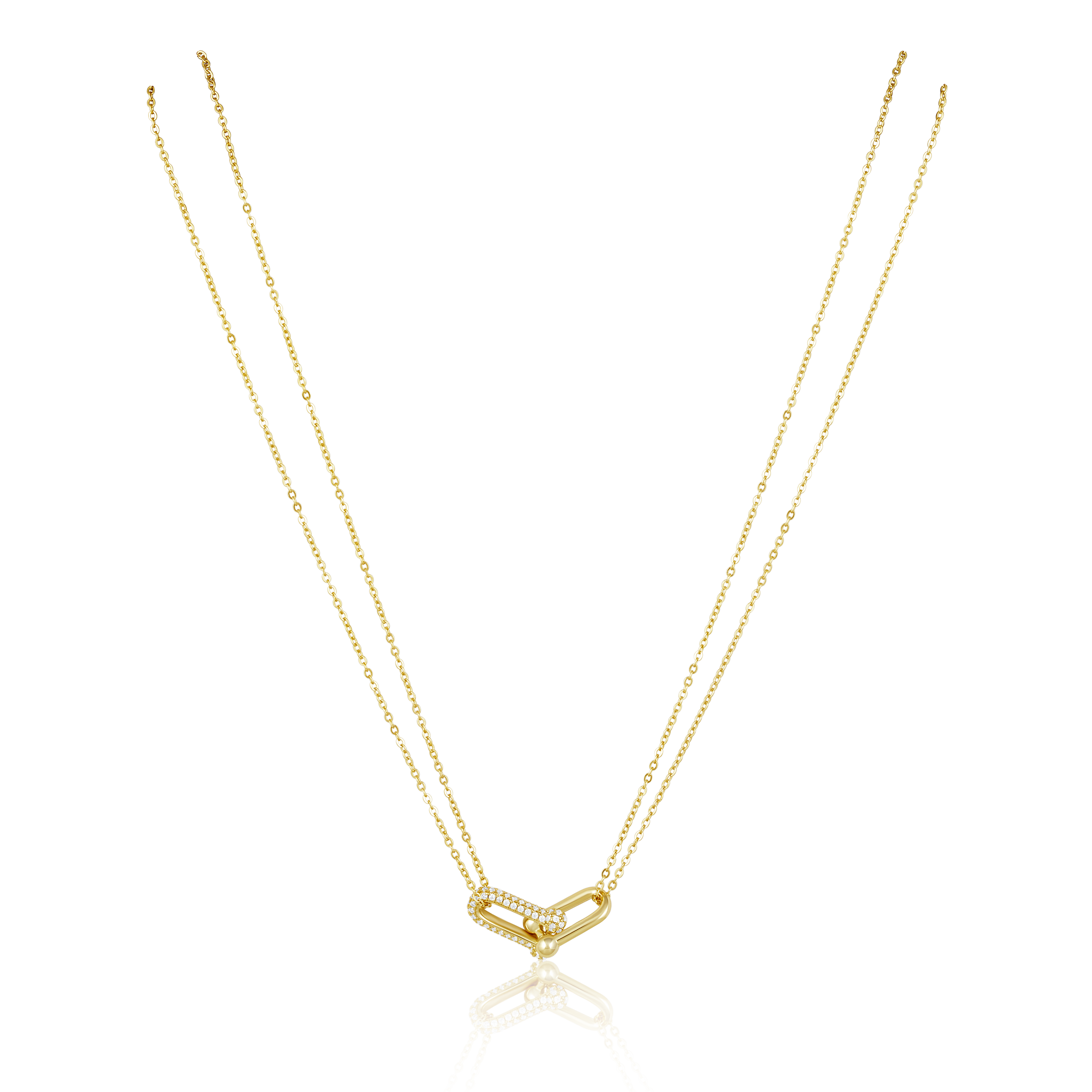 Elevate any outfit with our stunning U Link Pave Necklace! Crafted with two dainty U links on a delicate chain, this piece adds a touch of elegance and sophistication. Perfect for everyday wear or special occasions, it's a must-have for any fashion-forward individual.
