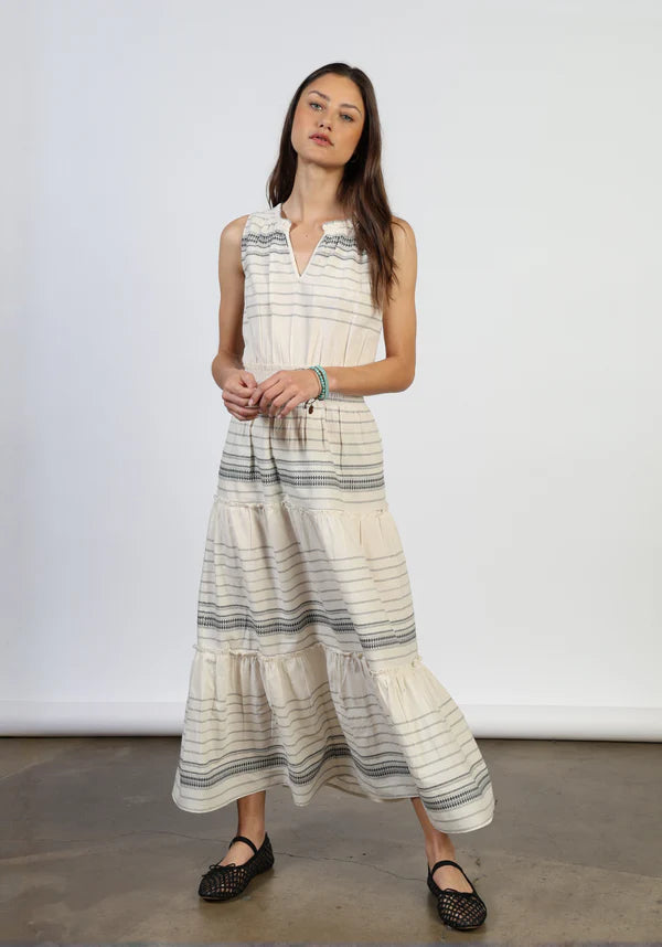 Timeless Andrea Dress in crisp 100% cotton with delicate embroidered stripes. The classic silhouette and breathable fabric make it perfect for warm-weather styling—dress it up with accessories or keep it casual for everyday wear. A versatile wardrobe essential that transitions seamlessly from season to season.