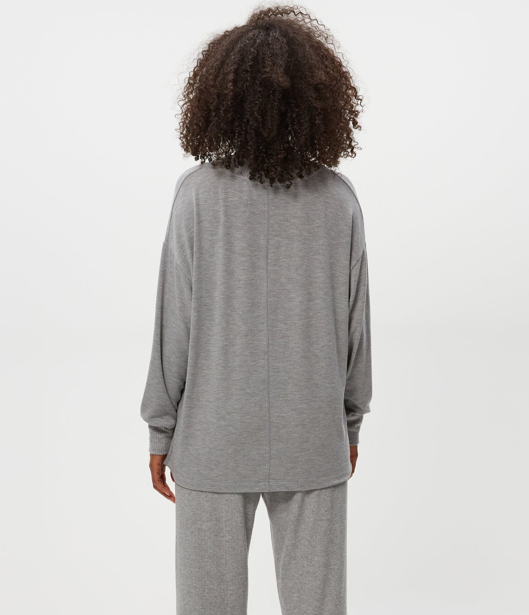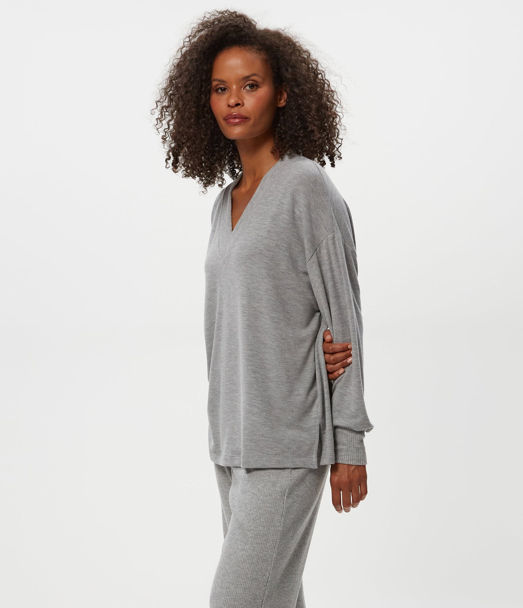 Meet the v-neck tunic you didn’t know you needed. With an oversized fit, the Athena features a wide ribbed v-neckline, cuffed sleeves and side slits. Its brushed soft feel adds to its appeal, making it the perfect for lounge and travel days.