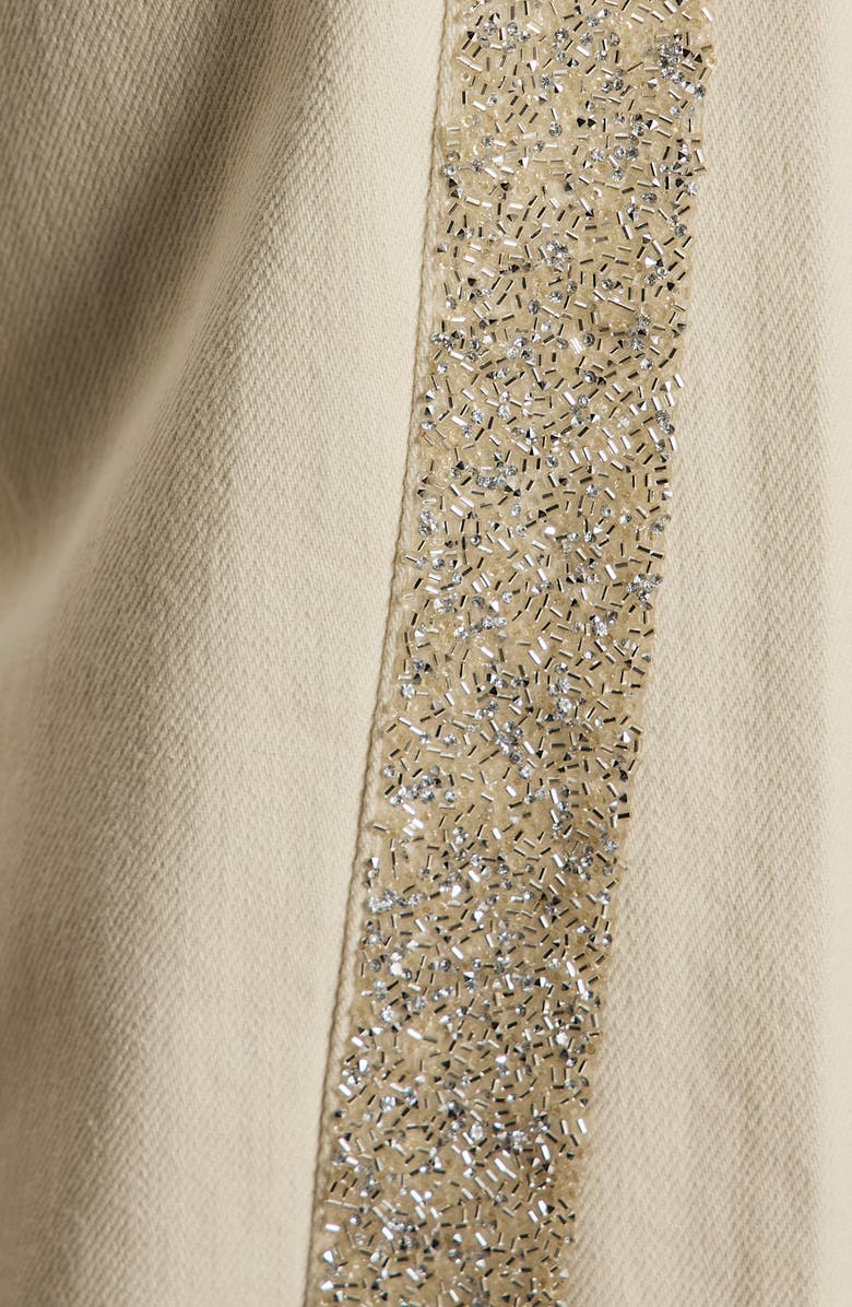 Sporty style steps out for the night in nonstretch jeans striped with sparkle at the sides.