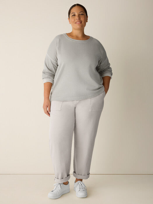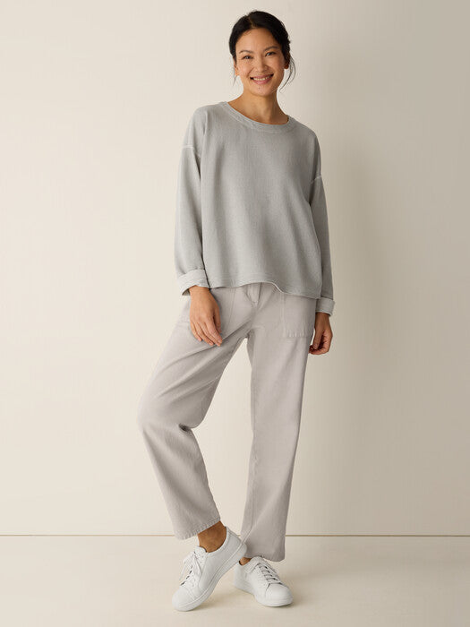 A relaxed top you can reverse to change up the look—solid on one side, striped on the other. Subtly textured on both sides in soft organic cotton.