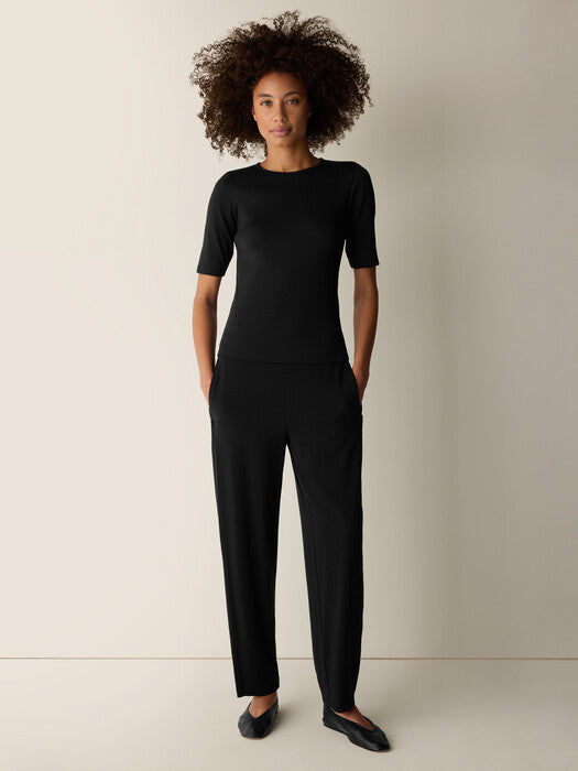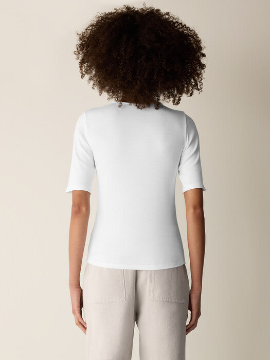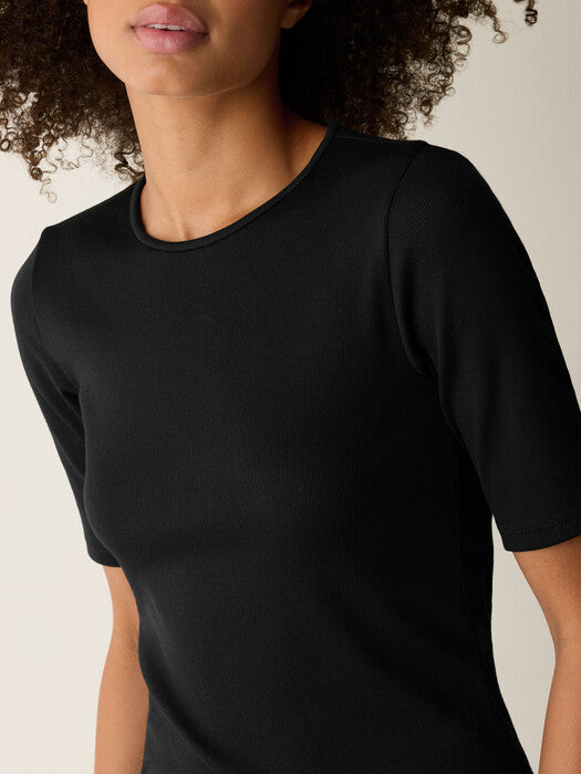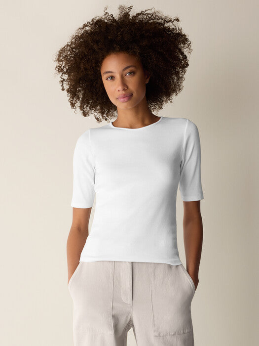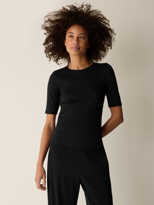 Organic Cotton Stretch Rib Crew Neck Elbow Sleeve Top