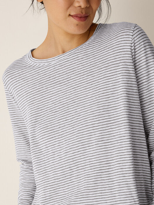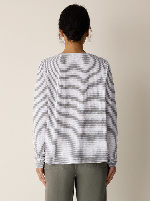Striped Organic Linen Jersey Crew Neck Long Sleeve Tee