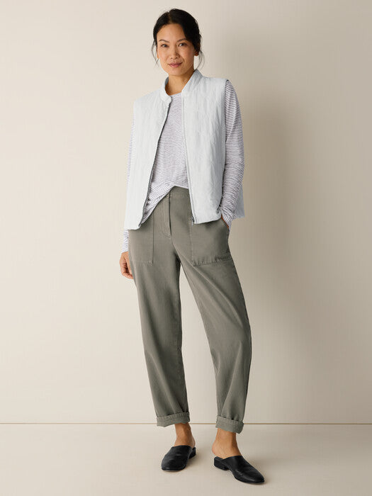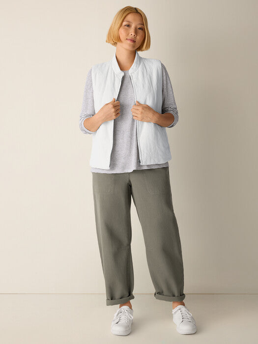 An elevated basic. The long sleeve tee with a crew neck and long sleeves, in a striped organic linen knit. Made in a Fair Trade Certified™ factory.