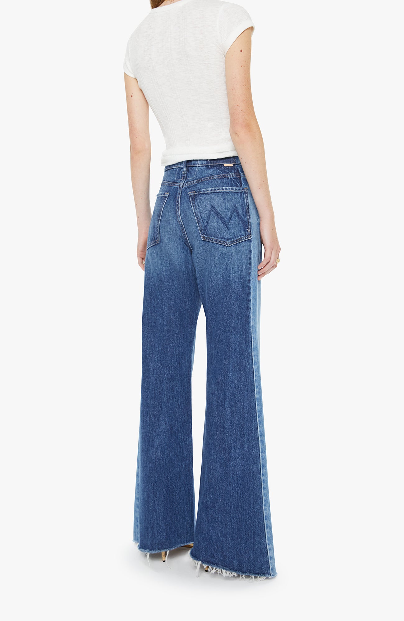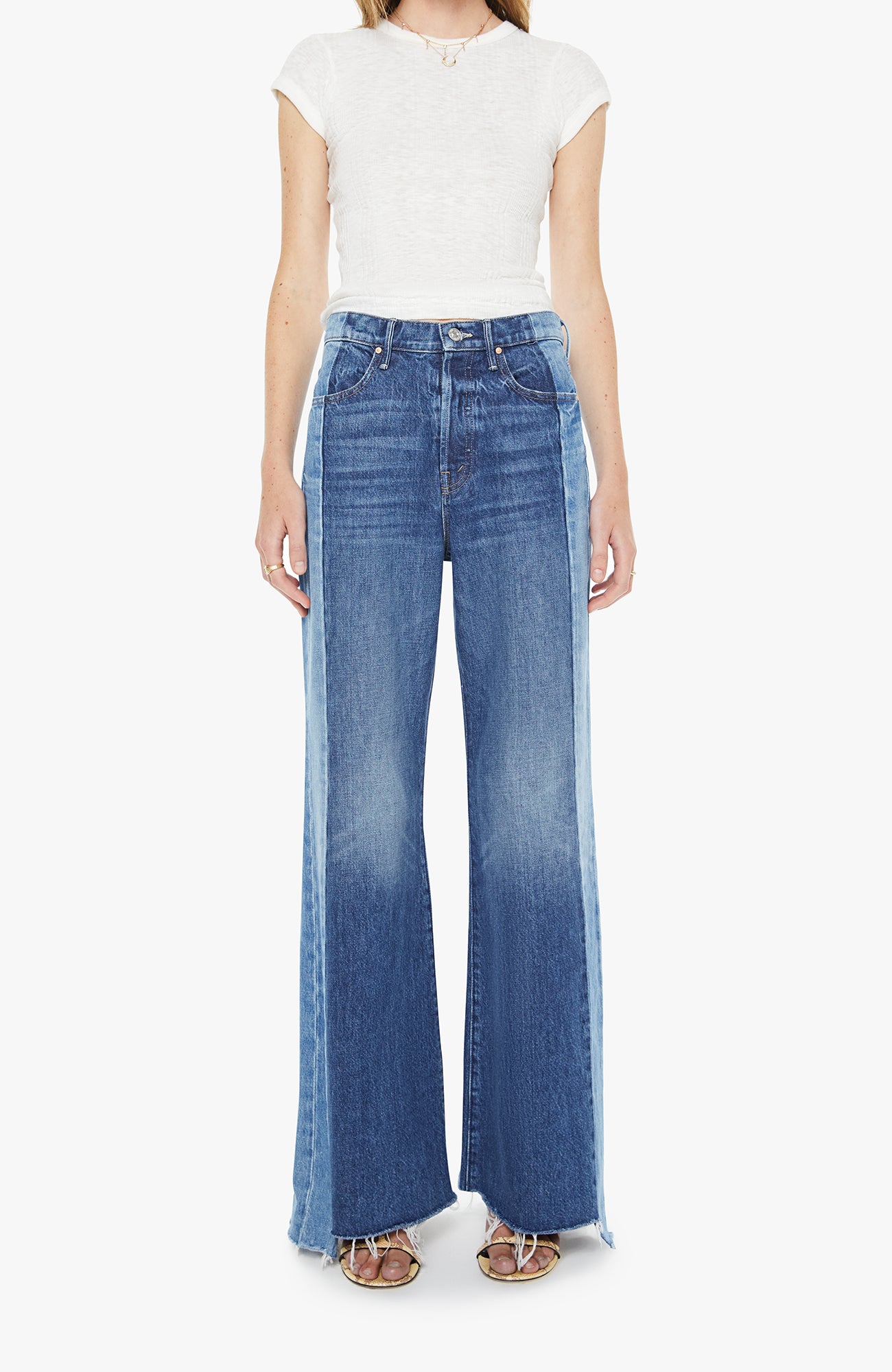Made ya look. High-waisted wide-leg jeans with a button fly, long 32-inch inseam and a frayed, uneven hem. Made from rigid SUPERIOR denim, Double Take is mid blue with whiskering, fading and lighter panels down the outer leg.