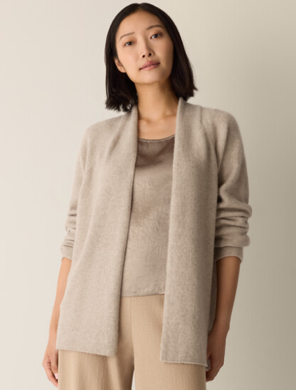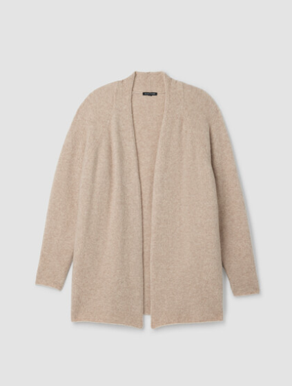 Blissfully soft. A long cardigan with a high collar and open front. In a textural blend of cashmere and silk—one of our softest and most luxurious yarns.