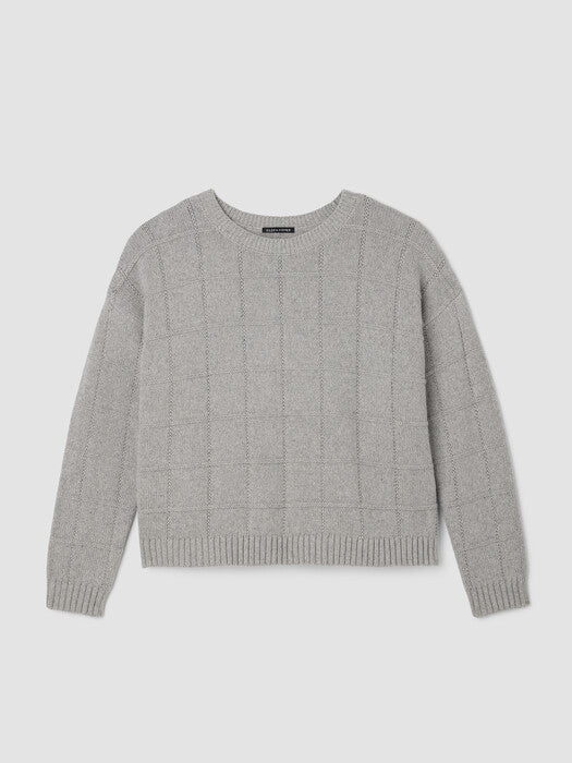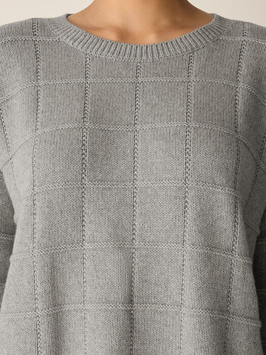 Soft and simple. The crew neck top elevated by a knitted grid pattern, in a cozy blend of cotton and recycled cashmere.