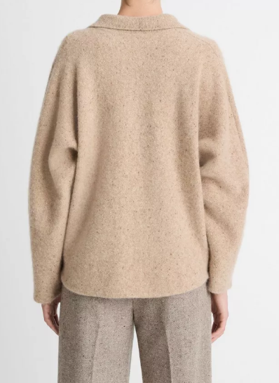Knit from our signature plush cashmere, this classic polo sweater is distinguished by easy dolman sleeves and a textural, multicolored Donegal finish.