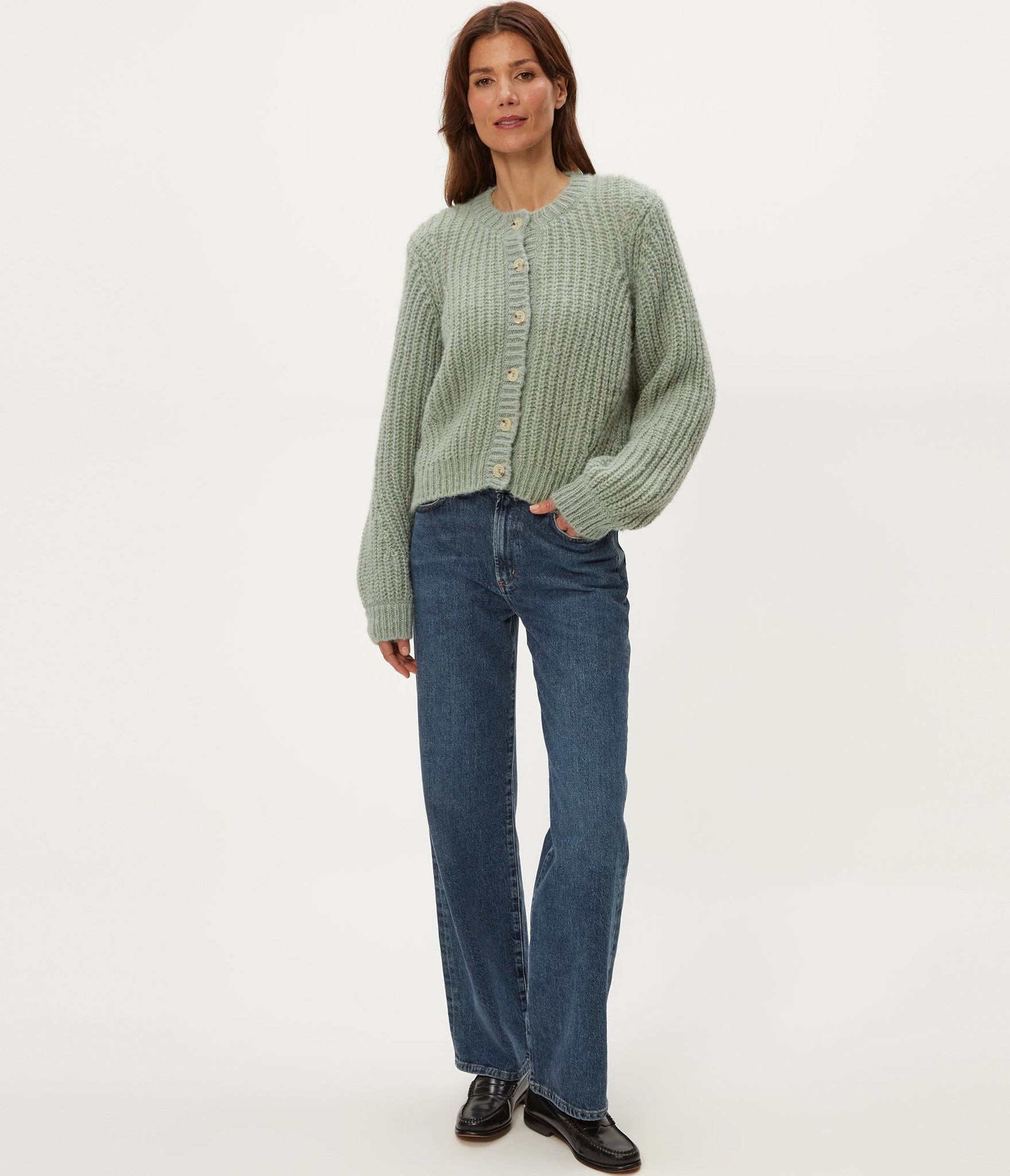 Enter Lumi, the chunky knit cardigan that is the standard of the season. From the crew neckline and button closure to the easy fit and perfectly ballooned sleeves, this cardigan has it all. Lumi’s super soft feel and style-driven knit pattern elevate this everyday sweater from average to favorite.