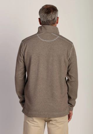Features a full sherpa lining, a quarter zip, a mock neck, contrast stitching detail, flannel inside collar, and a straight hem with side vents