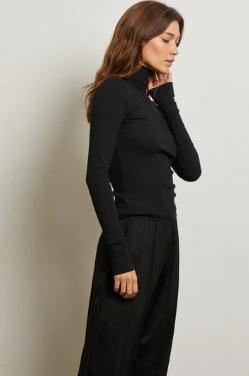 crafted from our signature cotton rib modal, the hayden top is your answer to elevated everyday dressing. this body-hugging style features a tall turtleneck for a refined, polished look that still feels easy. a sister to our lauryn mock neck, hayden brings a little more drama up top. wear it with your most relaxed denim for that just-right contrast.