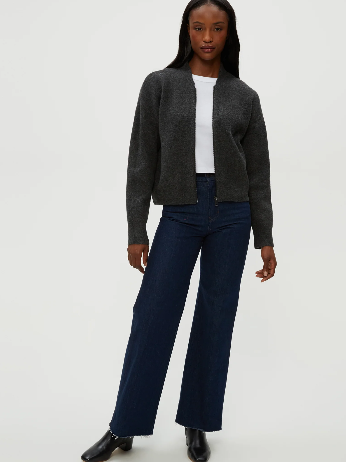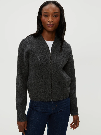When the forecast calls for a jacket, reach for Lidia, the perfect blend of fashion and function. With a round neckline, rib knit collar and zip front, this also features welt pockets. Designed from our cozy yarn fabric, this jacket is soft with the ideal cool fit, hitting right at the waist.