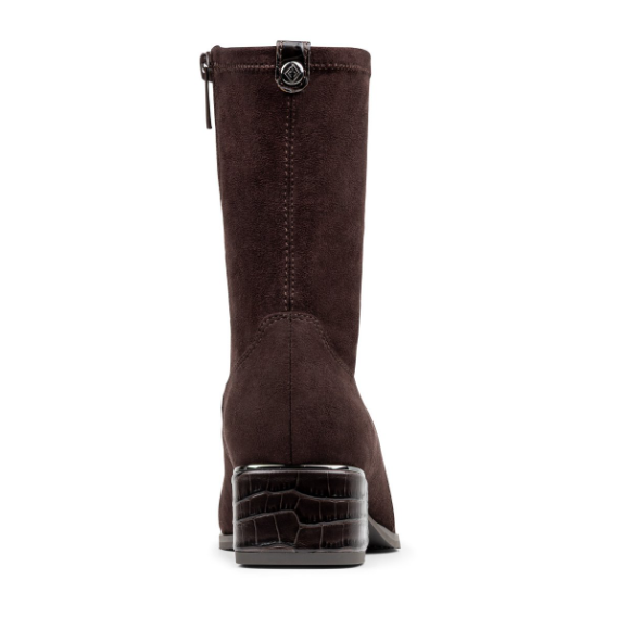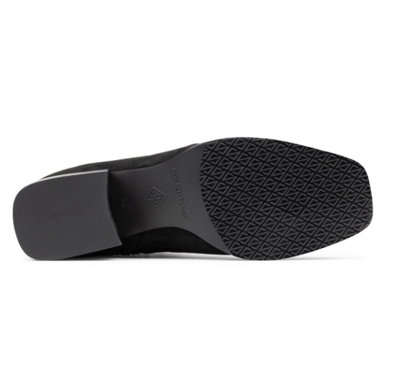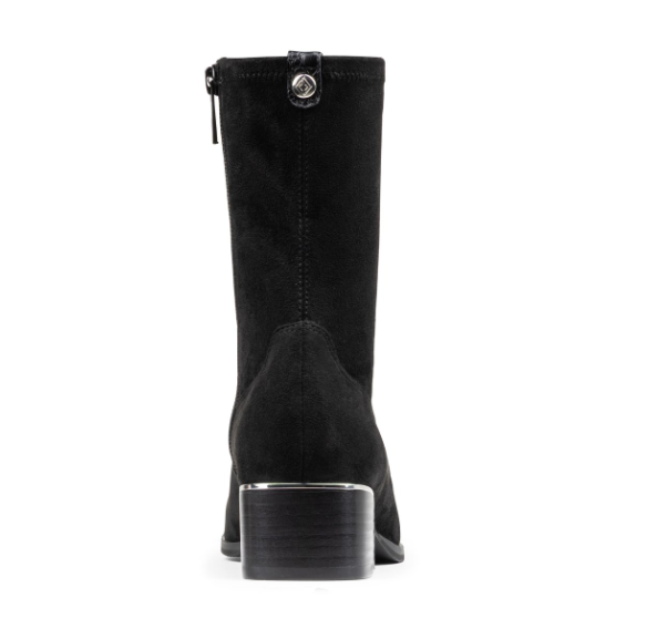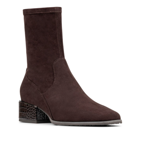 Metallic trim highlights the block heel of this versatile square-toe bootie complete with comfort-enhancing memory foam cushioning.