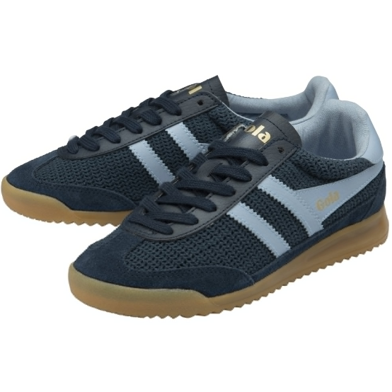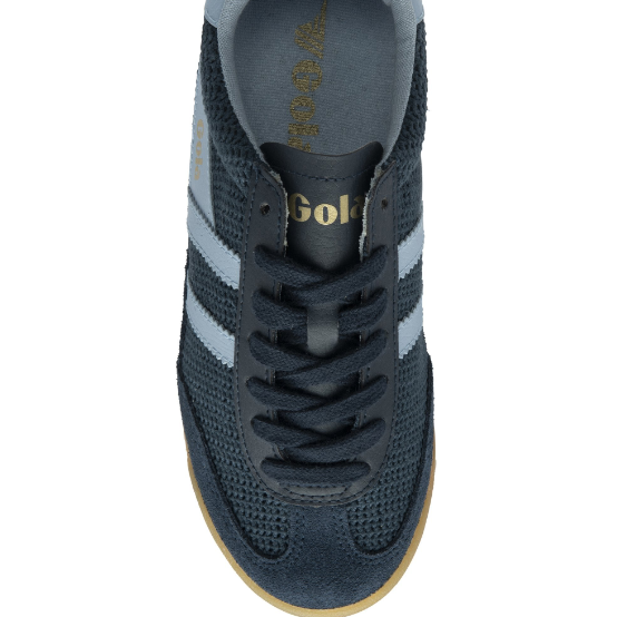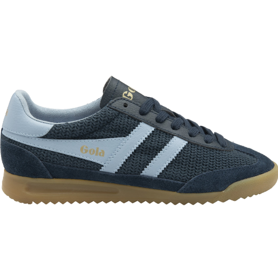 Perfectly suited to warmer days, Gola’s Tornado Zephyr is a versatile women’s sneaker choice for the season. Taking Gola’s top selling Tornado silhouette and applying a woven crochet style upper, Tornado Zephyr feels fresh and new. This navy with air blue edit is enhanced with a slight wedge gum sole that gives this women’s Gola sneaker old school charm.