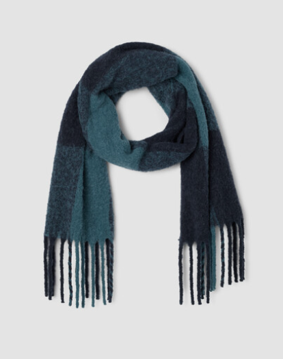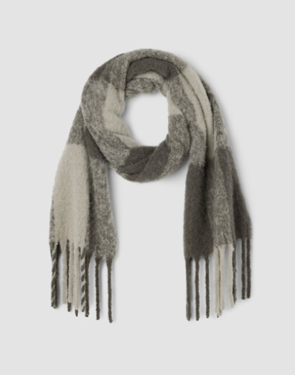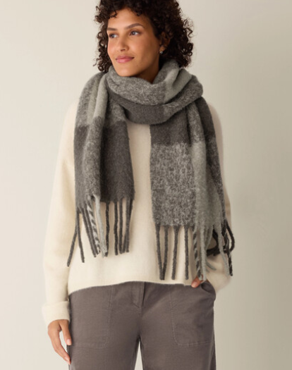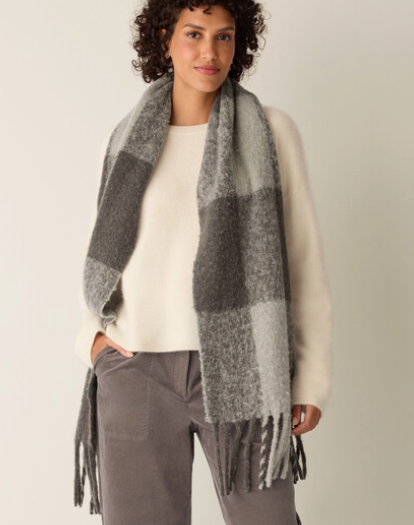 So soft, it feels like a cloud. A fluffy scarf in a cozy blend of alpaca and recycled nylon with an oversized check pattern.