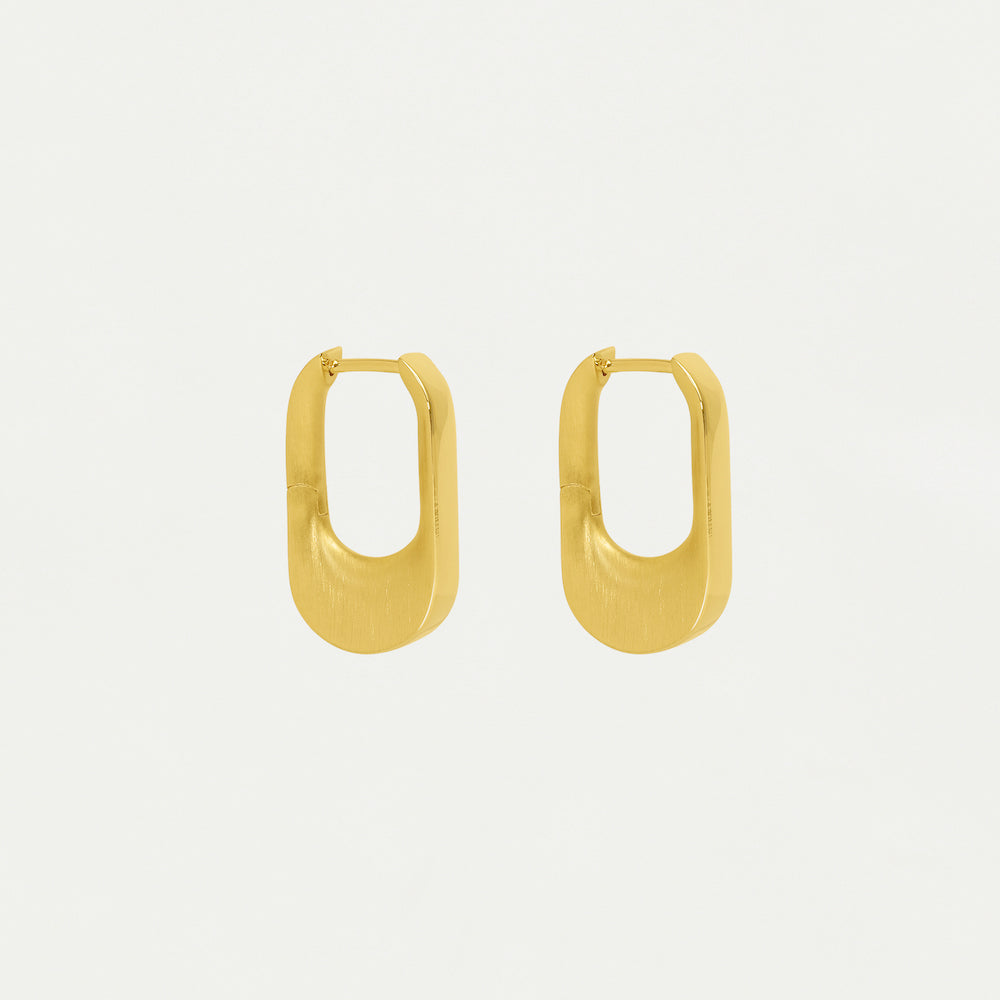 The perfect touch for your ear lobes, whether worn on their own or in your second or third holes. These brushed-gold or silver huggies feature a U-shape with a hint of thickness at the bottom. Sleek but not plain, they’re designed to suit any look.