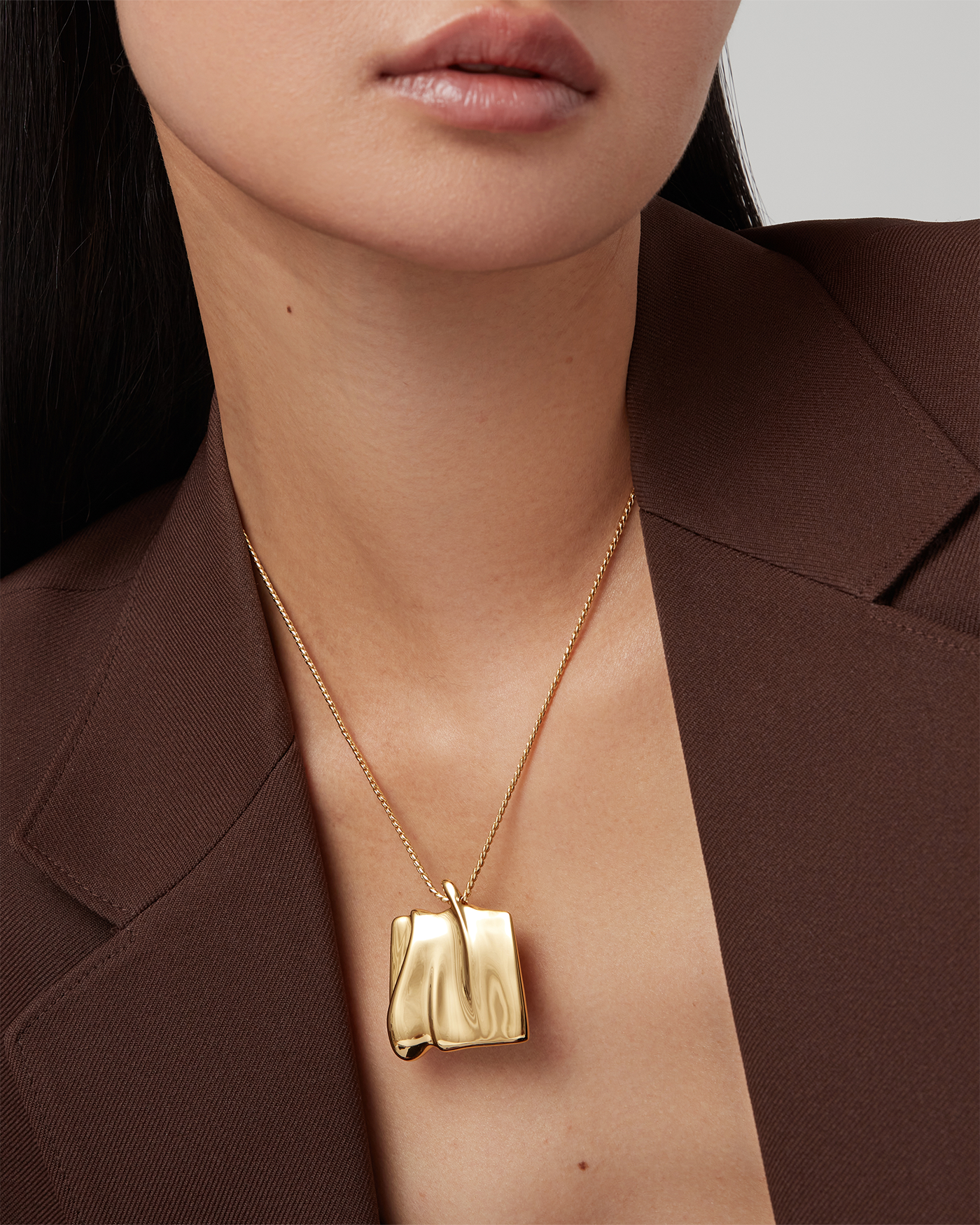 Mirroring a sand dune shaped by natural winds, this large organic square pendant glides along a silver chain. This design includes a shortening ring, making it easy to adjust and wear at 18" or 20". Finished in high-polish silver.