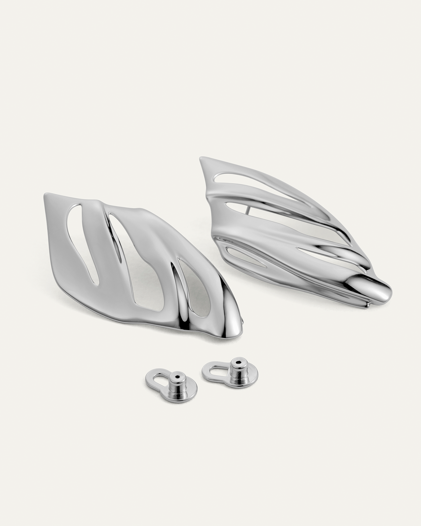 Prepare to make a major statement. Designed in a kite-like shape with on-trend cutouts, these earrings play with light and custom shadows. They are thoughtfully-designed to be lightweight and are paired with Lobe Lifters for an extra bout of support. Finished in high-polish silver.