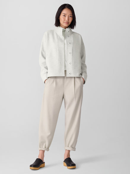 Any occasion, all season long. The stand collar jacket with a button front and pockets, in 100% Responsible Wool Standard certified wool. Designed with a generous, boxy fit that drapes away from the body to create movement. A boiled wool with a soft, felted feel. The wool is not only responsibly sourced, it's helping to regenerate depleted grassland in Argentina with potential to sequester carbon and fight climate change.