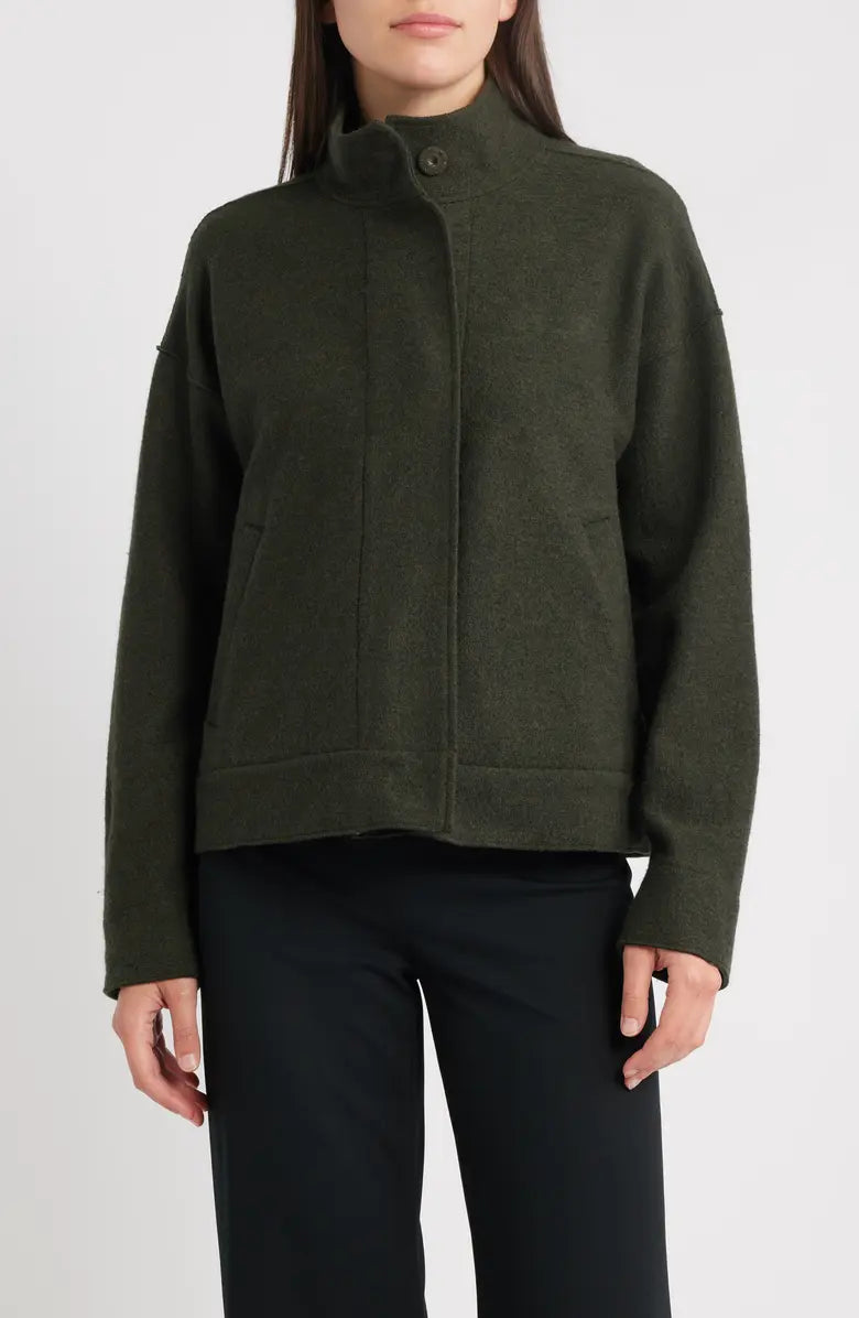 Lightweight Boiled Wool Stand Collar Jacket