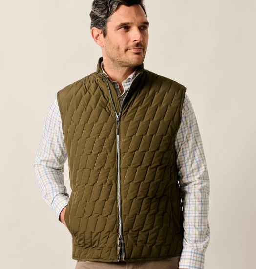 This British hunting-inspired, lightweight quilted puffer vest keeps a stiff upper lip and a refined, modern pattern. Always a reliable layer for cool fall mornings and a must-have while traveling near and far, you may end up needing it in than one color.