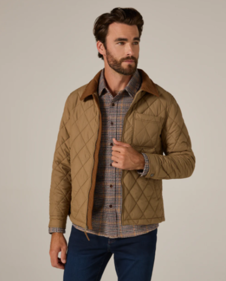 This classic quilted jacket is built to last. A secure chest zipper, slanted pockets, and give it function without sacrificing form. Designed with intention, it’s outerwear that does more than just look good.