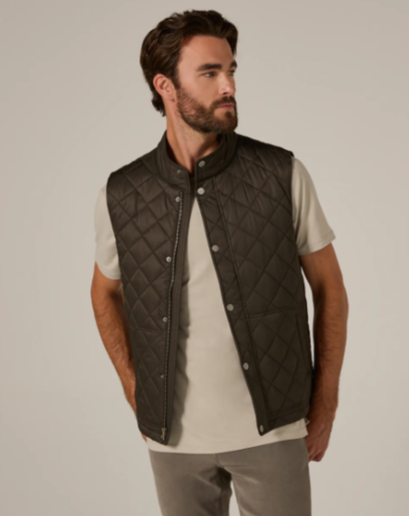 Crafted from responsibly sourced, upcycled materials, this diamond quilted vest offers a water-repellent finish, soft-touch interior, and vented side seams for comfort. Designed with a funnel neck, zip-and-snap closure, and secure interior pocket, it’s the perfect layering piece for the office or on the go.