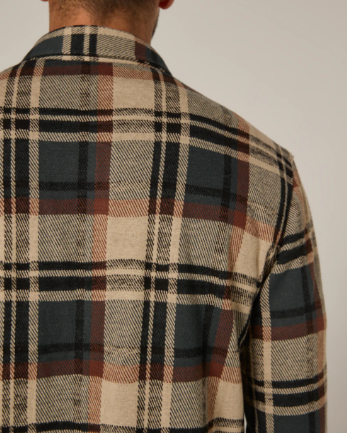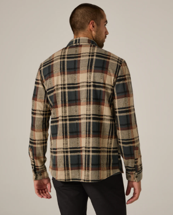 This soft-touch, double-knit jacquard shirt pairs a designer-made plaid pattern with 4-way stretch for all-day comfort. Finished with chest flap pockets, faux-horn buttons, and a curved hem for a clean, tailored look.