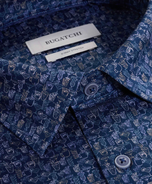 The James OoohCotton® long-sleeved shirt in cocktail theme novelty print features a point collar and a curved hem for a sleek tucked or untucked look. The notched cuffs are adjustable to allow for customized fit and also convertible to accommodate cufflinks. OoohCotton® is a performance, double-mercerized, wrinkle-resistant, breathable, and easy-care cotton blend with 8-way stretch, quick-dry, and thermal comfort properties.