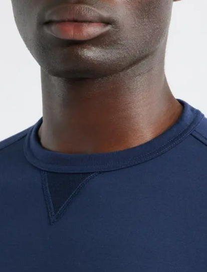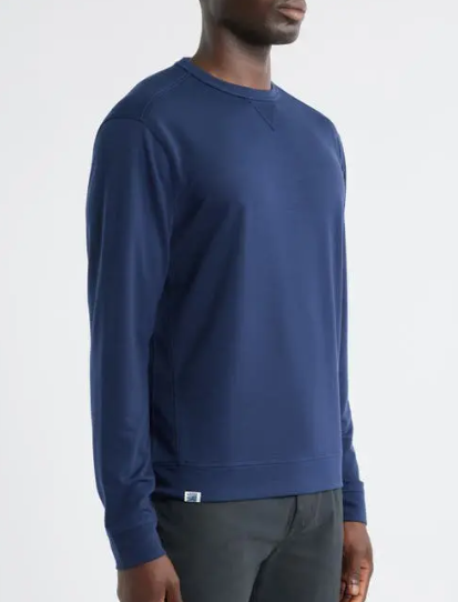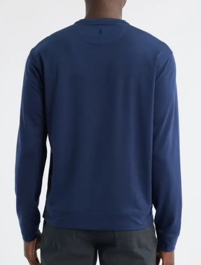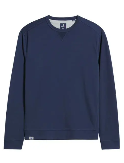 This crewneck sweatshirt from johnnie-O is made with 81% polyester, 11% lyocell, and 8% spandex. It features banded cuffs and hem.
