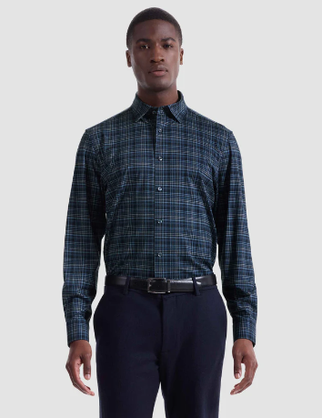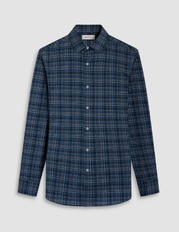 The Jules OoohCotton® long-sleeved shirt in plaid print features a hidden button-down collar, mother-of-pearl buttons, and a curved hem for a sleek tucked or untucked look. The notched cuffs are adjustable to allow for customized fit and also convertible to accommodate cufflinks. OoohCotton® is a performance, double-mercerized, wrinkle-resistant, breathable, and easy-care cotton blend with 8-way stretch, quick-dry, and thermal comfort properties.