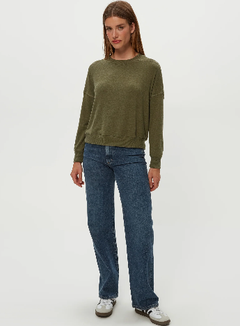 A soft style to add your rotation, the Marty crewneck is designed from our luxe Madison Brushed Jersey fabric. With rib mixing throughout and cover stitch detail, this easy-to-wear, cozy style is the perfect match for your favorite denim.