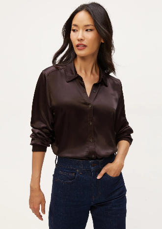 Meredith is an elevated version of the classic button down. Featuring a collar and long sleeves with a ribbed cuff detail, our made-in-LA satin drapes beautifully for a flattering, loose fit.