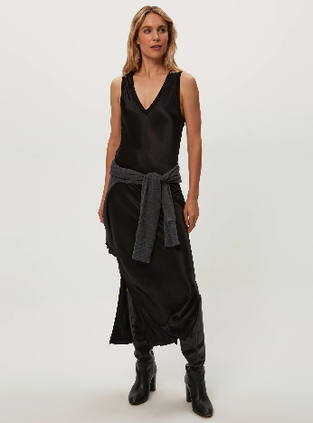The Randi is a luxe midi dress is cut on the bias and crafted from our made-in-LA satin for a beautiful drape. Perfect for layering under your favorite sweater, or over your favorite turtleneck.