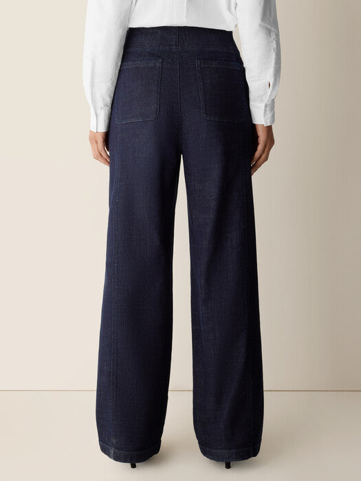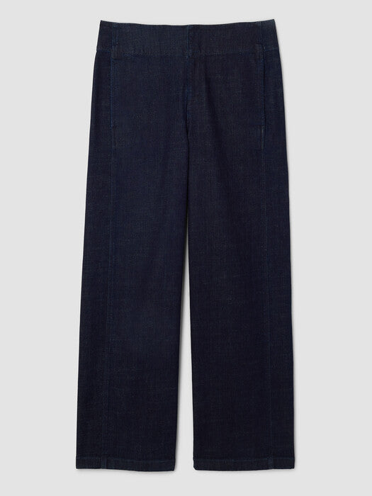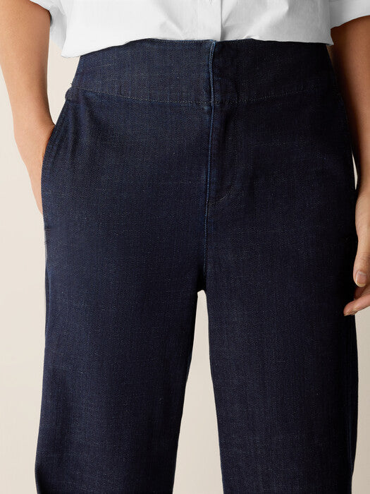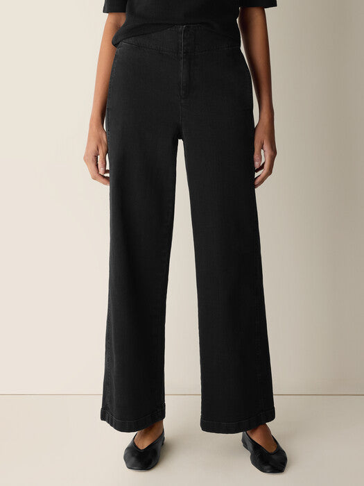 A sophisticated take on denim. The wide-leg trouser with a fly front and pockets, in a blend of organic and recycled cotton. Made in a Fair Trade Certified™ factory.