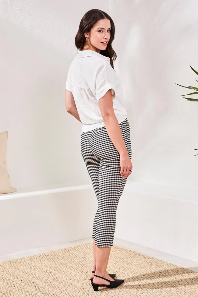 Gingham Bengaline Side Slit Capri Pants