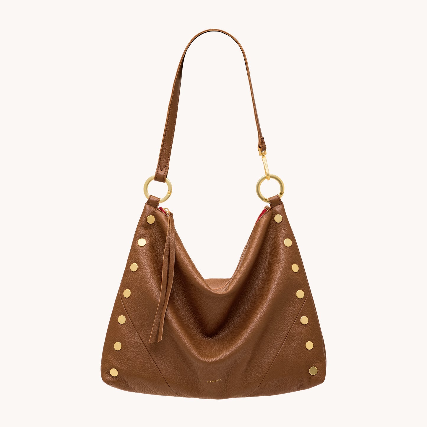 Crafted with a soft pebbled leather with a hint of shine featuring a warm medium brown hue