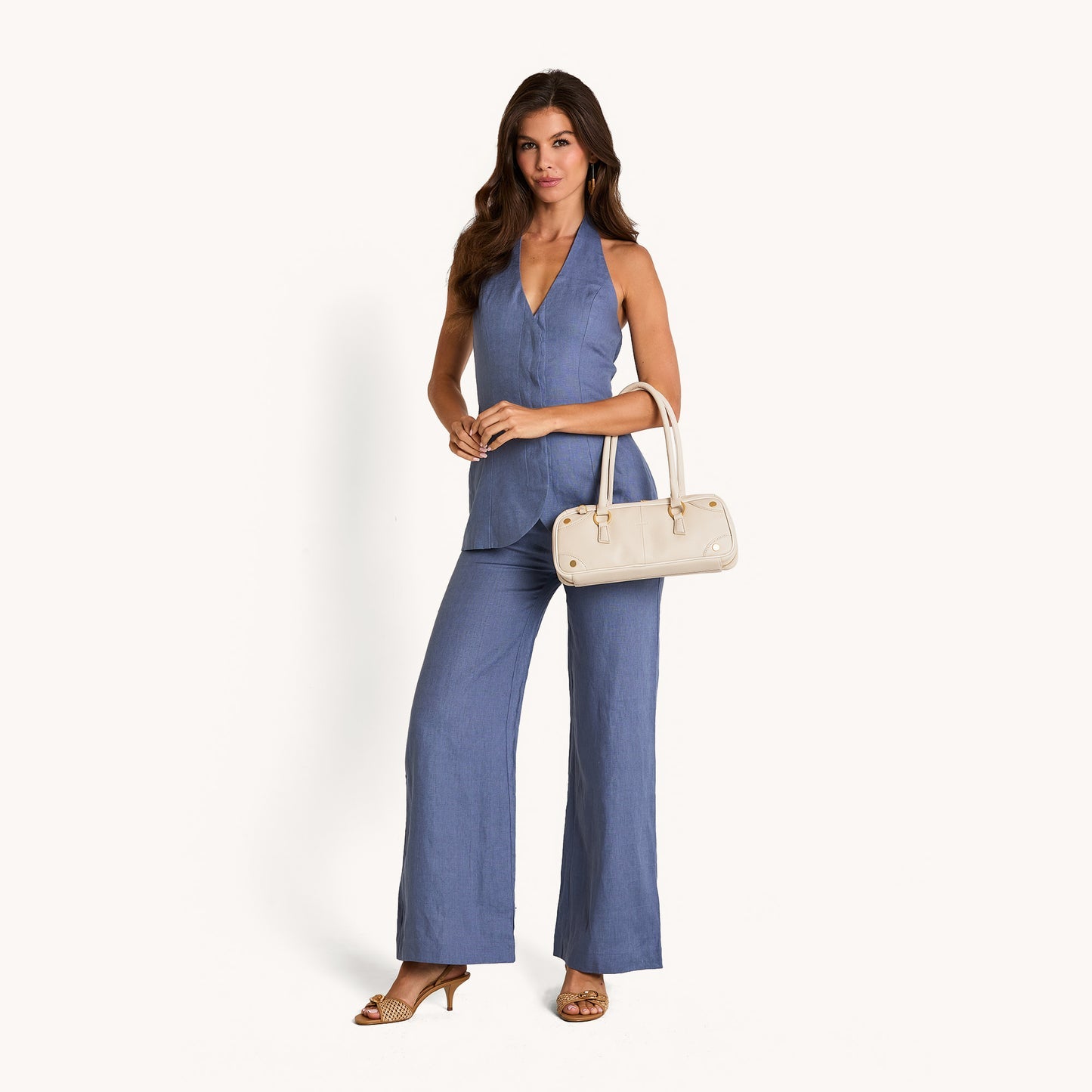 - Brushed gold hardware