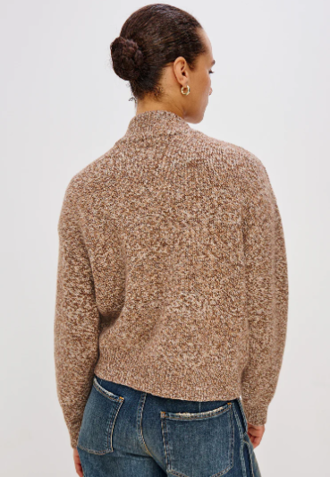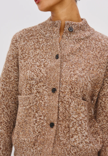 The Olvera is made from a buttery-soft marl knit with a stand collar, front button closures, and patch pockets. Long sleeves and ribbed trim complete this effortlessly polished sweater.