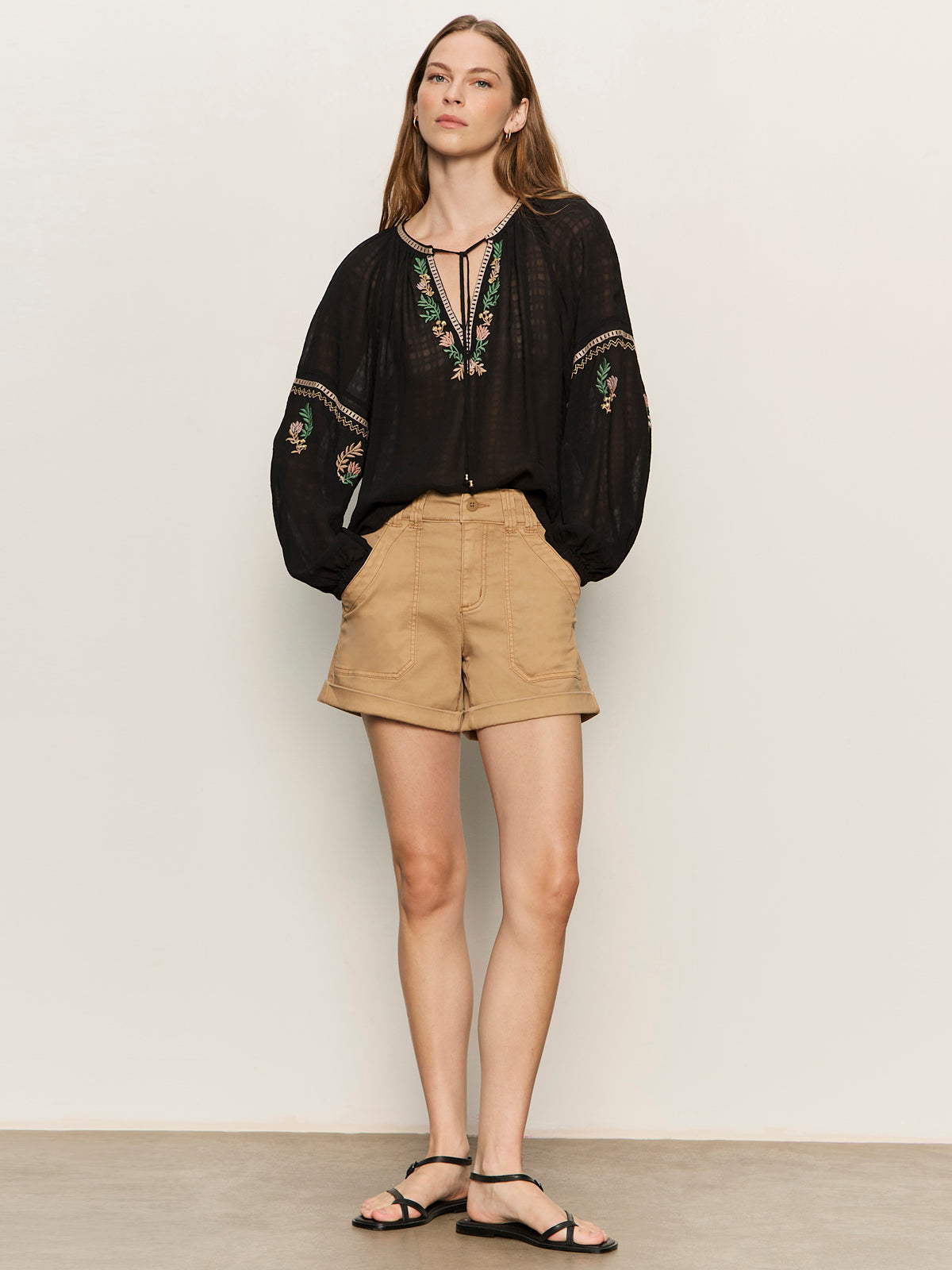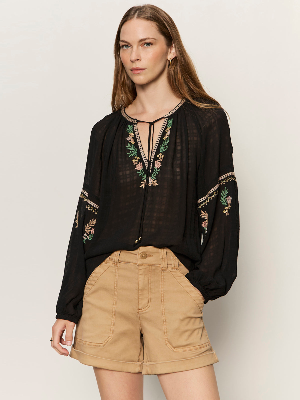 Delicate embroidery furthers the dreamy boho vibes of this peasant top cut for an easy fit that makes the most of the fine, airy fabric.