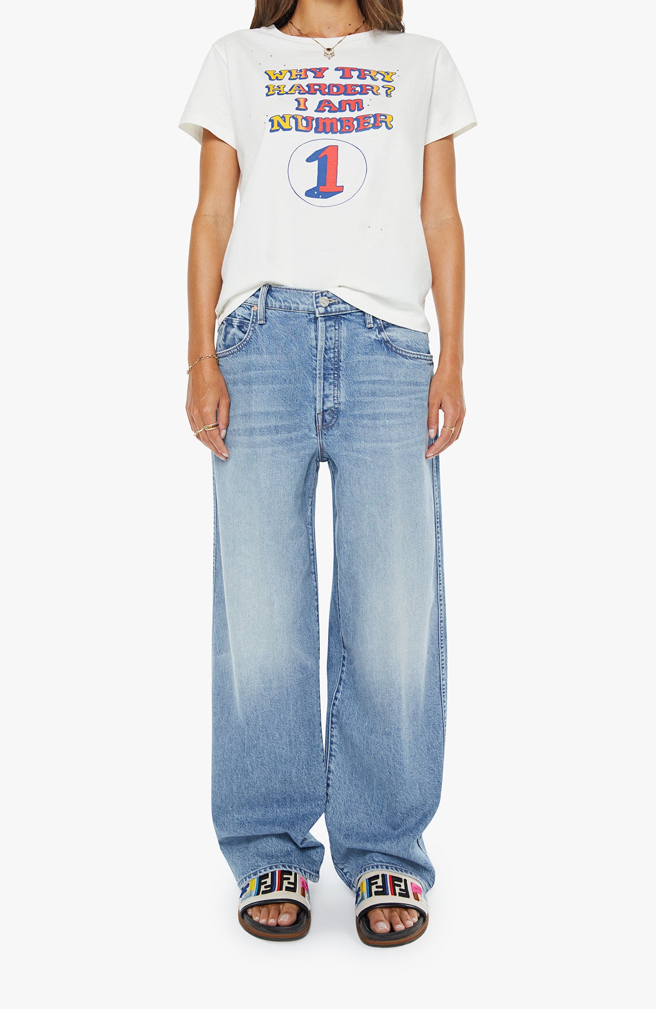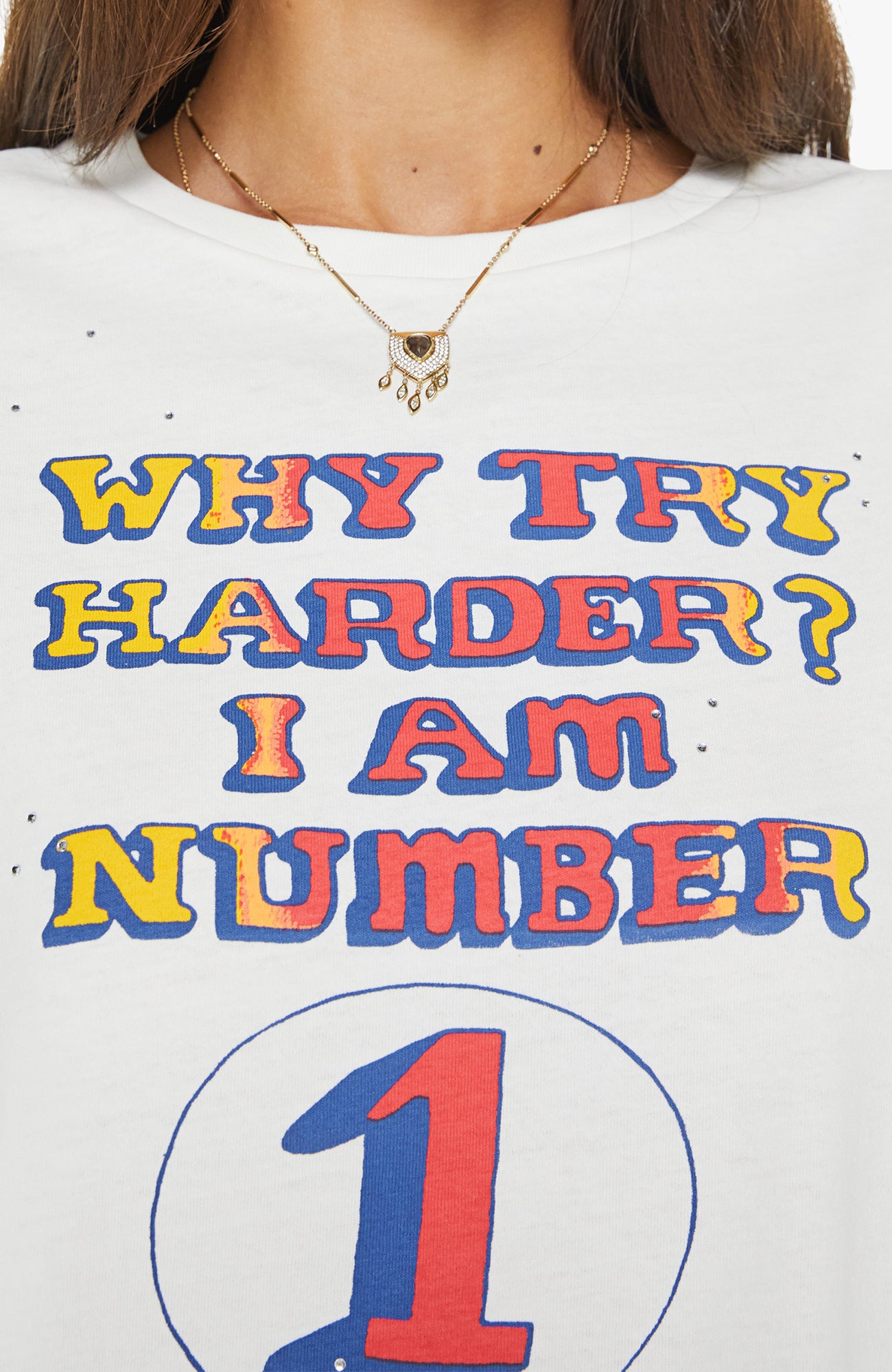 Nothing to prove. A soft crewneck with a slim fit for a vintage look and feel. Made from 100% cotton in off-white, the tee features a red, orange and navy text graphic on the front with rhinestone details throughout.