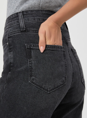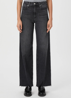 This high-rise wide leg has a slightly relaxed fit with a raw hem and a 31” inseam. In a washed black with lived-in details, this pair is crafted from heritage-inspired denim with a soft hand-feel and a hint of stretch.