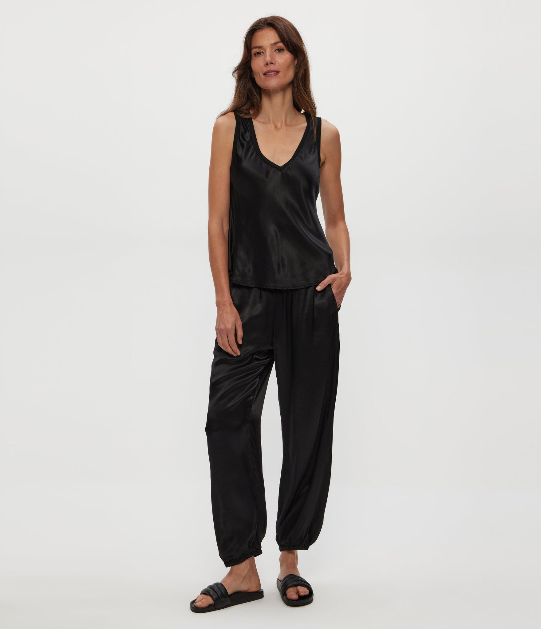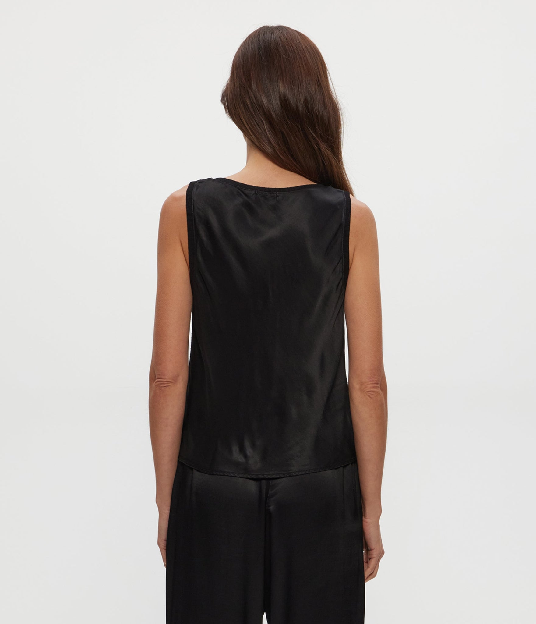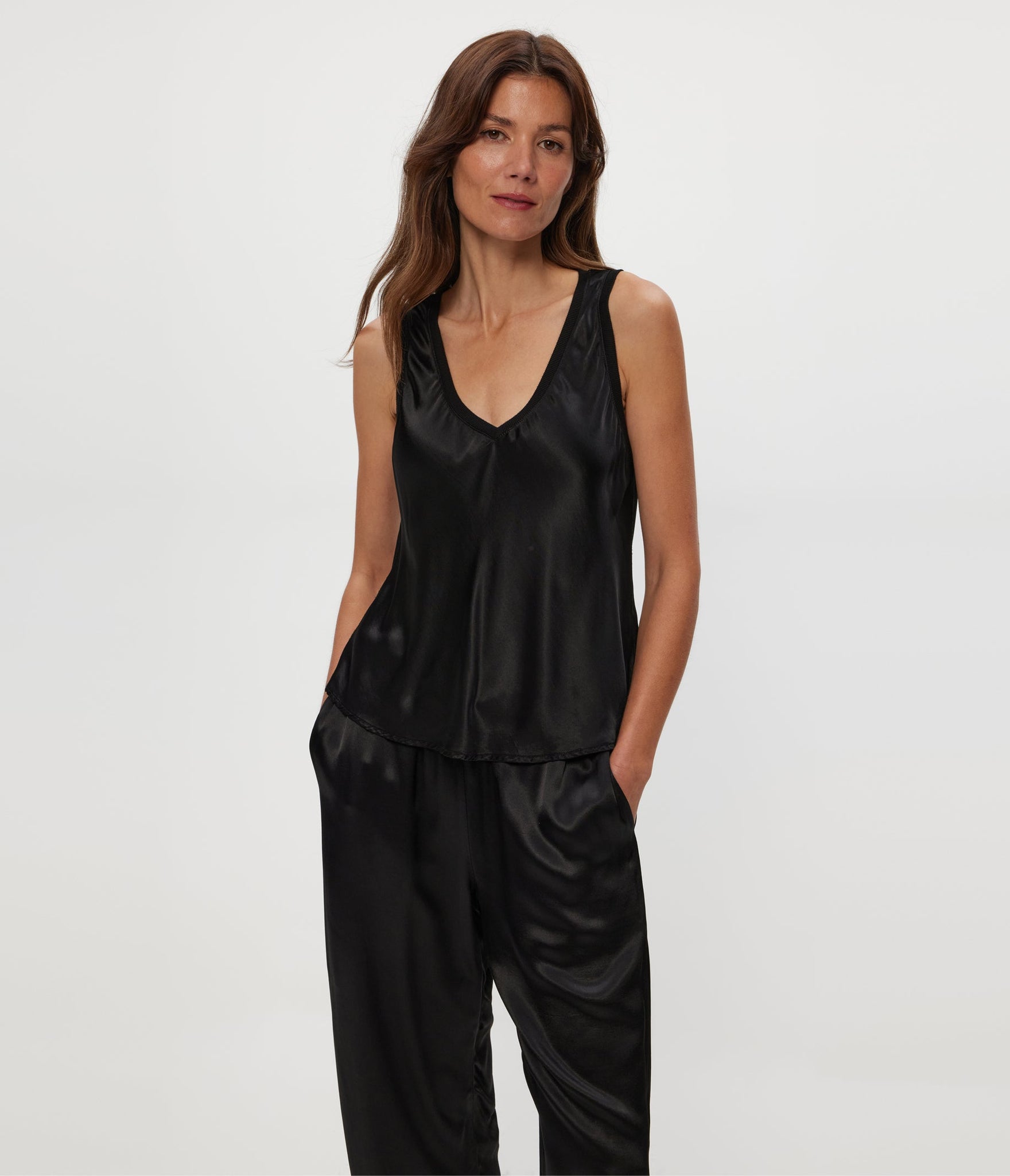 Thoughtfully designed and feels luxurious, this washable satin tank is a foundational style that’s flowy with an easy overall fit.