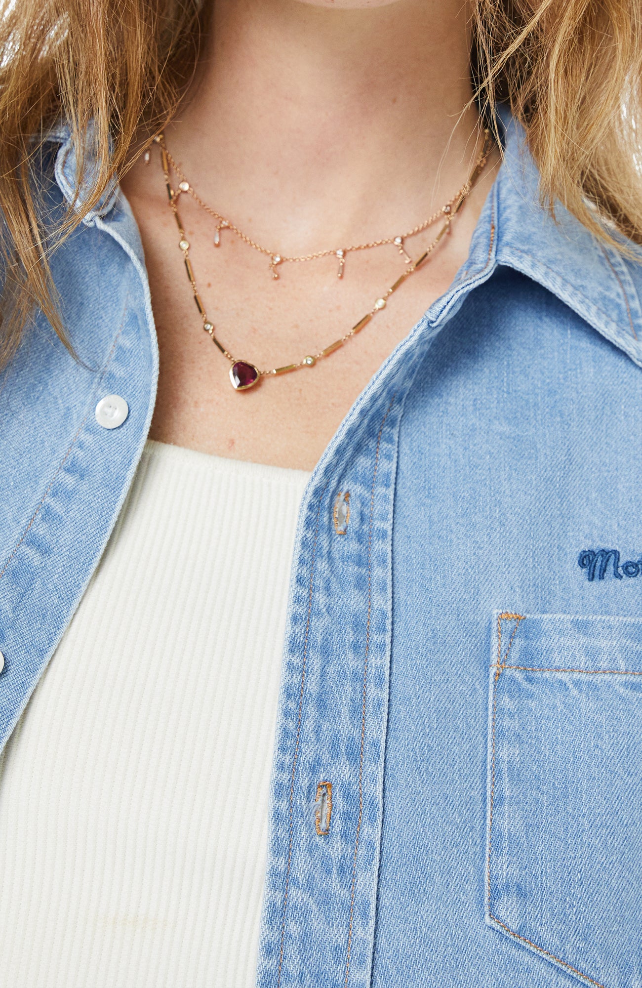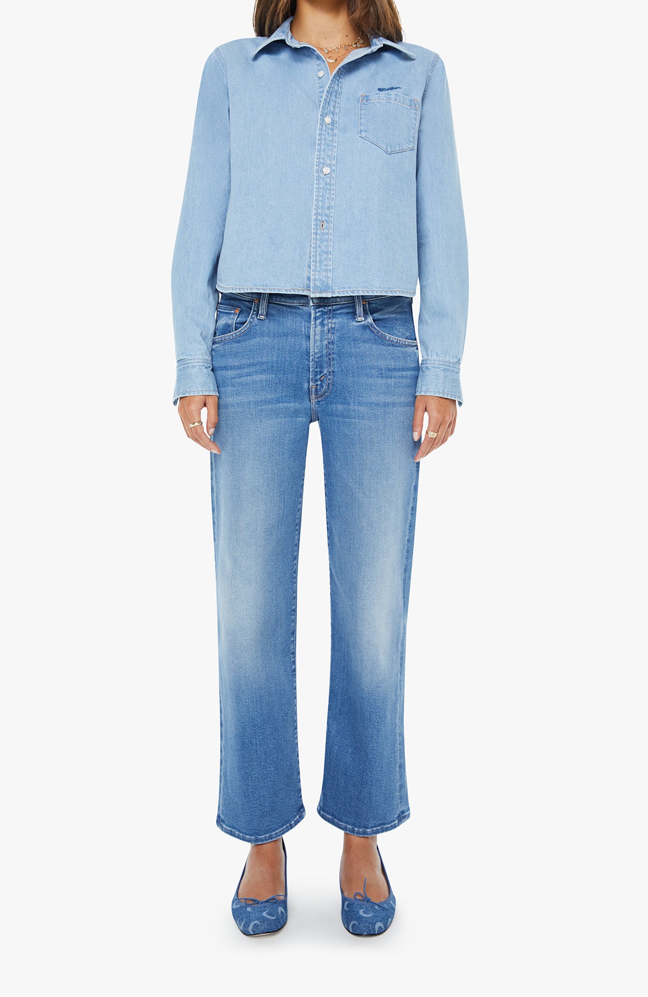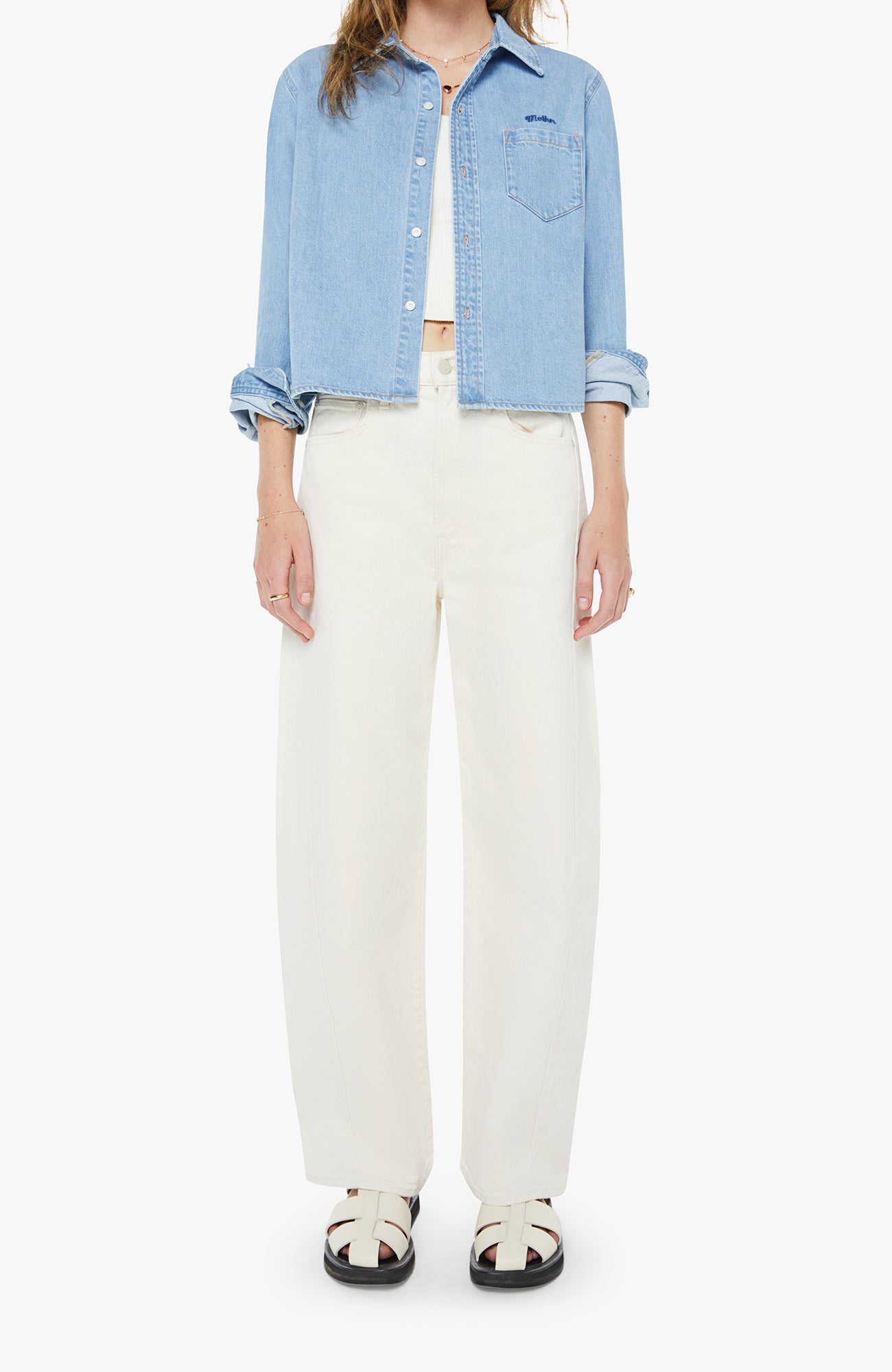 An expanded collection of foundational pieces designed for All Day, Every Day. Created for versatility, layering, and year-round wearability, these are the pieces you will never stop reaching for. A play on the classic button-up with a front patch pocket and a cropped fit. Made from a SUPERIOR recycled cotton blend, Grand Slam is a light blue denim.