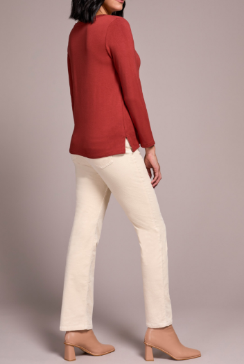 The French Terry Scoop Neck top features a graceful scoop neckline and subtle side slits that enhance movement and comfort. Crafted from soft French terry fabric, it offers a refined balance of casual ease and polished style, making it a versatile addition to any sophisticated wardrobe.
