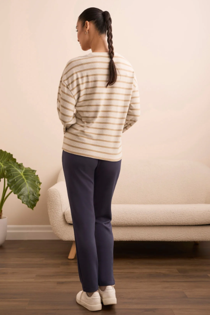 Step into ultimate comfort with this cozy brushed knit top, featuring a timeless striped pattern with a hint of nautical charm. The ultra-soft fabric makes it a perfect everyday favorite, while a classic crew neckline and cuffed sleeves complete the look with effortless ease.