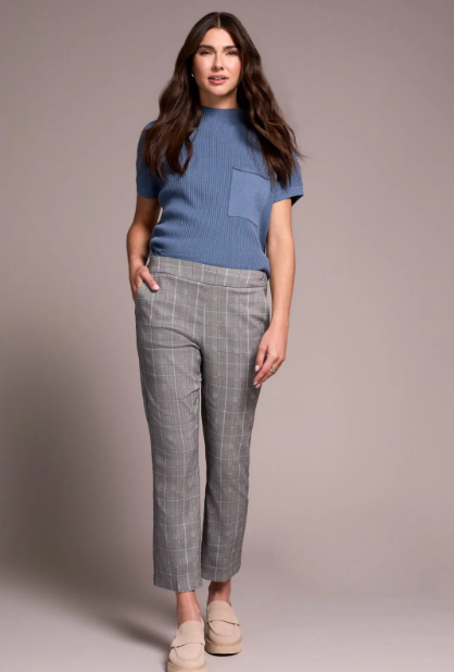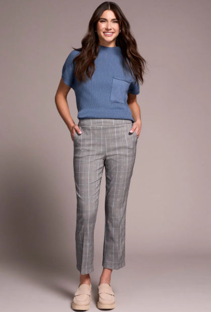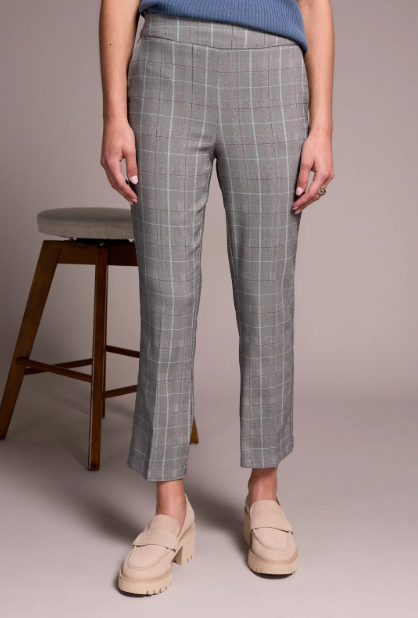 Elevate your ensemble with these stylish capri pants crafted from bengaline fabric and adorned with a sharp plaid pattern. The pull-on waist offers effortless wear, while the fabric's subtle stretch ensures comfort and flexibility. Functional front slash pockets complete the look without compromising on style and functionality.